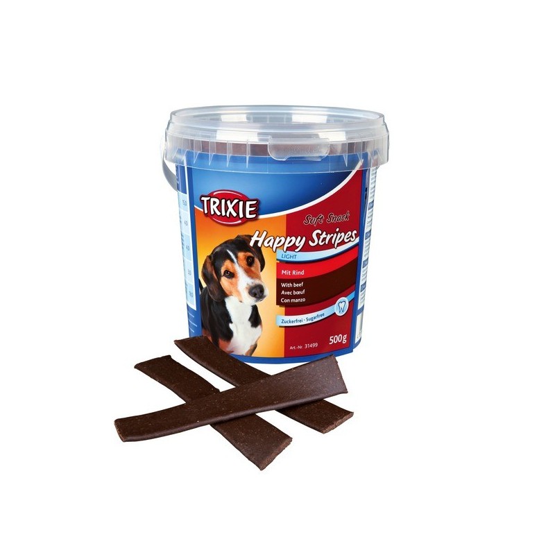 Friandises Snack au bœuf présentées sous forme de lamelles.